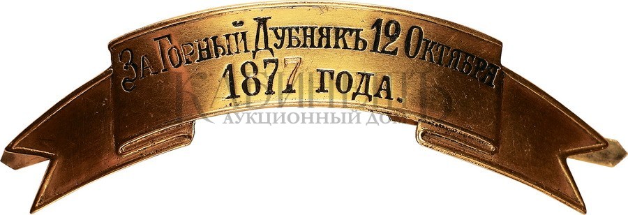 Знак за отличие на головной убор с надписью: «За Горный Дубнякъ 12 Октября 1877 года.», для нижних чинов