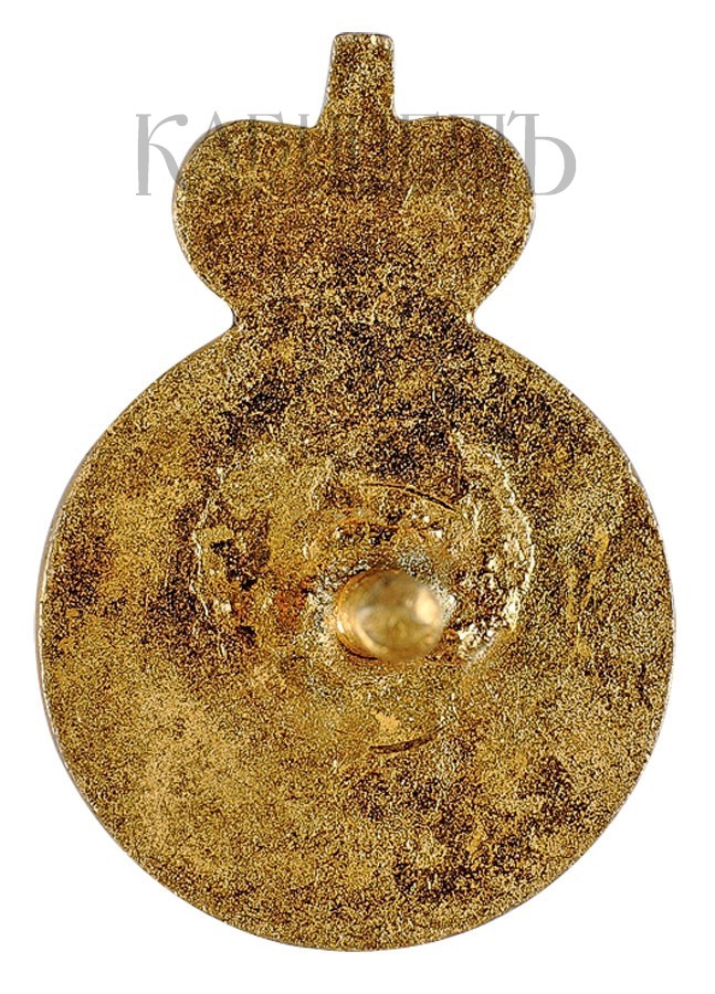 Российская империя, частная мастерская. Начало ХХ века. Размер 29,5 х 20 мм. Вес 8, 38 г. Бронза, эмаль, позолота.