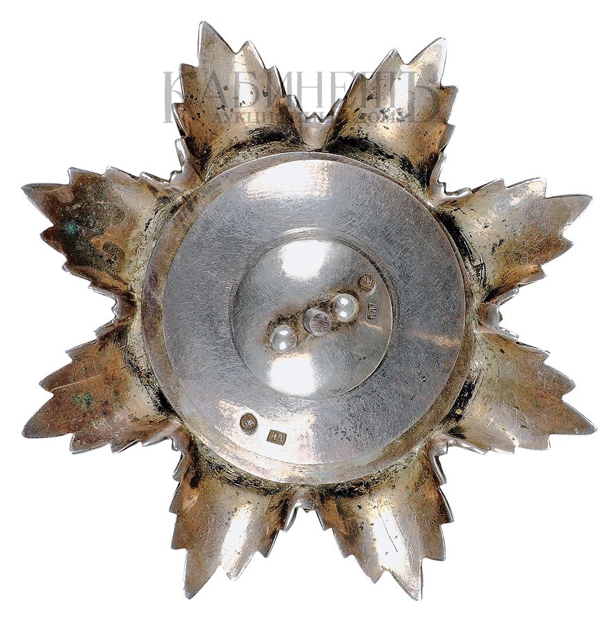 Клейма: на оборотной стороне звезды – пробирное «84» Московского окружного пробирного управления с гербом города Москвы и именник «ИА». На прижимной шайбе и на закрутке – знак удостоверения, именник «ИА».