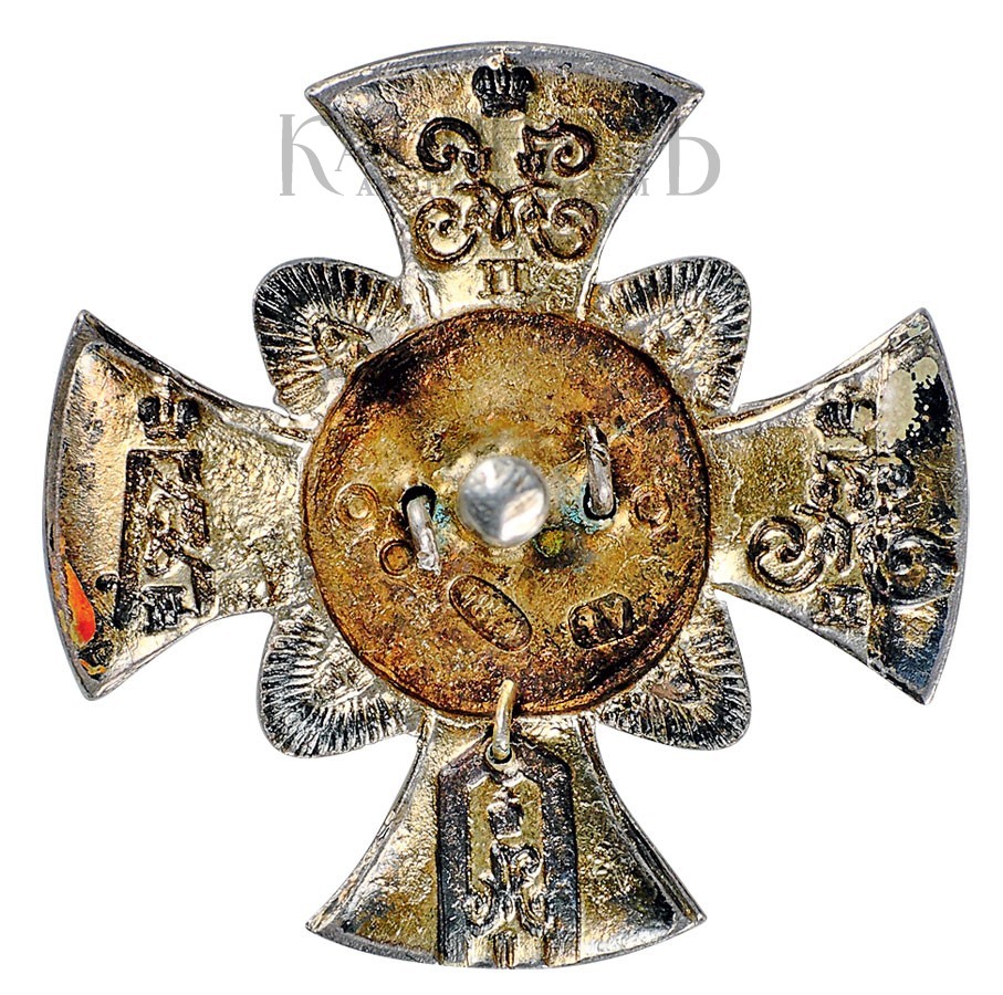 Клейма: на оборотной стороне под винтом – пробирное «84» Санкт-Петербургского окружного пробирного управления с женской головкой, повернутой вправо, с буквой «альфа»; знак удостоверения; именник «АБ».