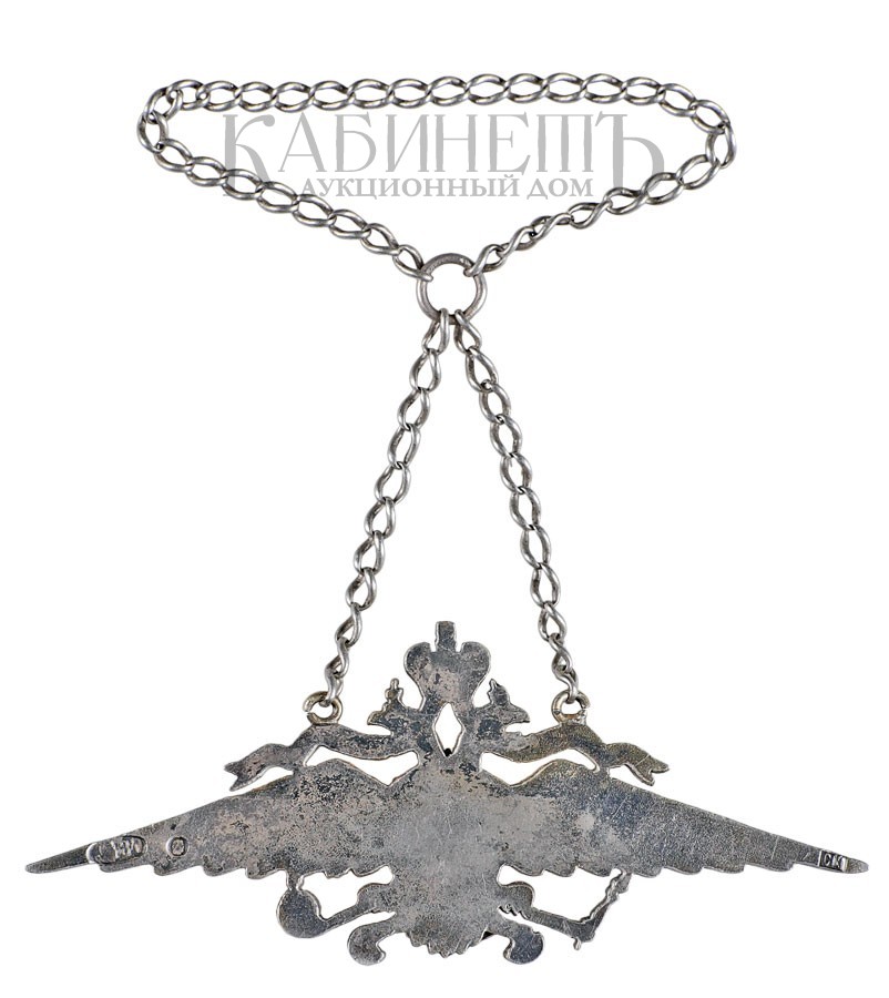 Клейма: на оборотной стороне – пробирное «84», с женской головкой, повернутой вправо, знак удостоверения; именник «СК» (Семён Казаков).