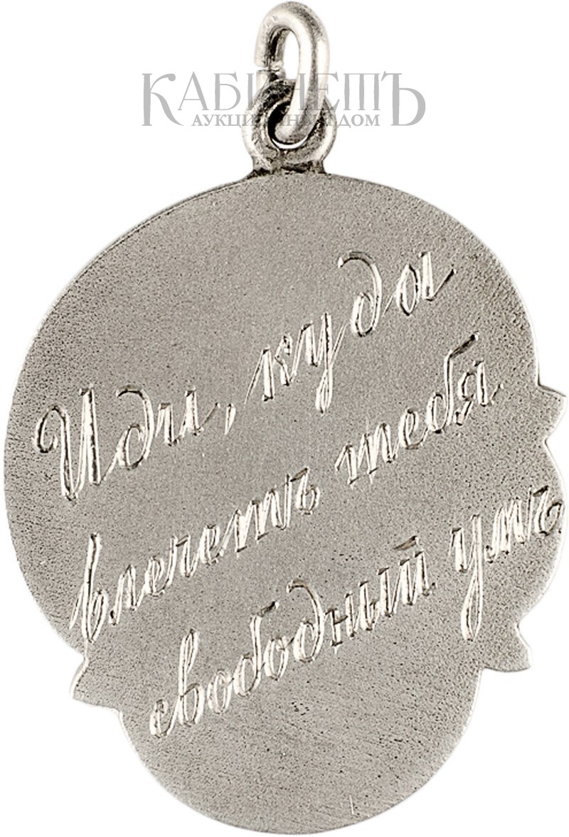 На оборотной стороне гравированная надпись: «Иди, куда/ влечетъ тебя/ свободный умъ».