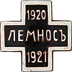 Знак с надписью «Лемнос»был учрежден приказом Главнокомандующего Русской армией генерала П. Н. Врангеля № 369 от 2/15 ноября 1921 года. На острове Лемнос – одном из самых больших островов в Эгейском море у берегов Турции – был расположен лагерь Кубанского корпуса под командованием генерала М.А. Фостикова. В лагере насчитывалось 16050 человек. В январе – марте 1921 г. из района Чаталджи на остров Лемнос была перевезена часть казаков Донского корпуса. Для них был устроен отдельный лагерь на другой стороне Лемносской бухты. Производство крестов с надписью «Лемнос» было налажено на острове в Технических мастерских Донского корпуса. Право на получение знака имели все чины, прибывшие в военный лагерь на острове Лемнос и вошедшие в состав Армии не позднее 1 марта 1921 г. и оставшиеся в нем до переселения в балканские государства.