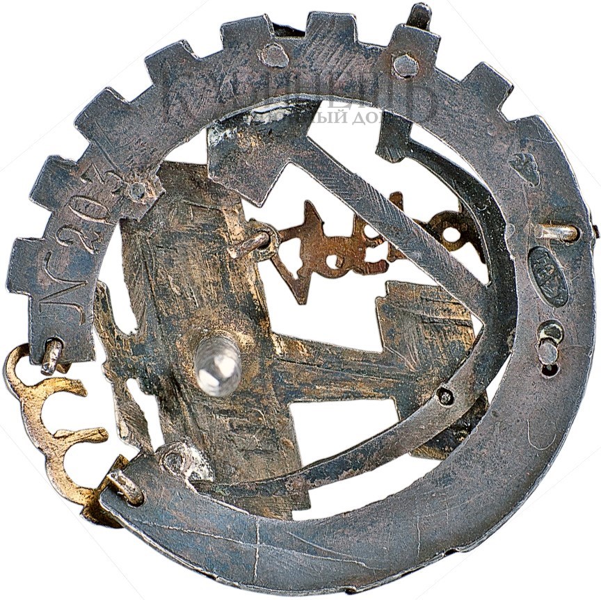 Клейма: на оборотной стороне – пробирное «84» Ленинградского окружного пробирного управления с женской головкой в кокошнике, повернутой вправо, и буквой «альфа»); именник «ТМ».