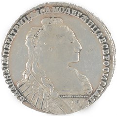 Серебро, вес 25,97 г. Биткин 490.122.«8 жемчужин в волосах». Петров 2,25 рублей. Чистка шеи и поля вокруг и на голове орла.