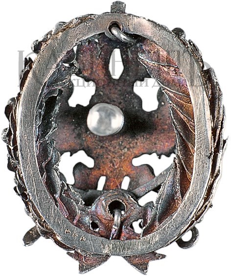 Российская империя, частная мастерская. Конец ХIX – начало ХХ вв. Размер: 25 х 20 мм. Вес: 7,65 г. Серебро, остатки позолоты. Патрикеев, Бойнович I 1.1.12.