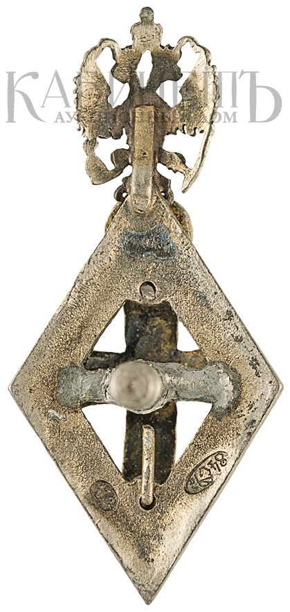 Клейма: на оборотной стороне – пробирное «84» Санкт-Петербургского окружного пробирного управления (с инициалами пробирного инспектора «ЯЛ» (Яков Ляпунов); именник «ЭД».