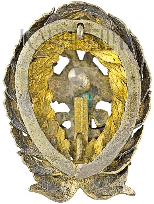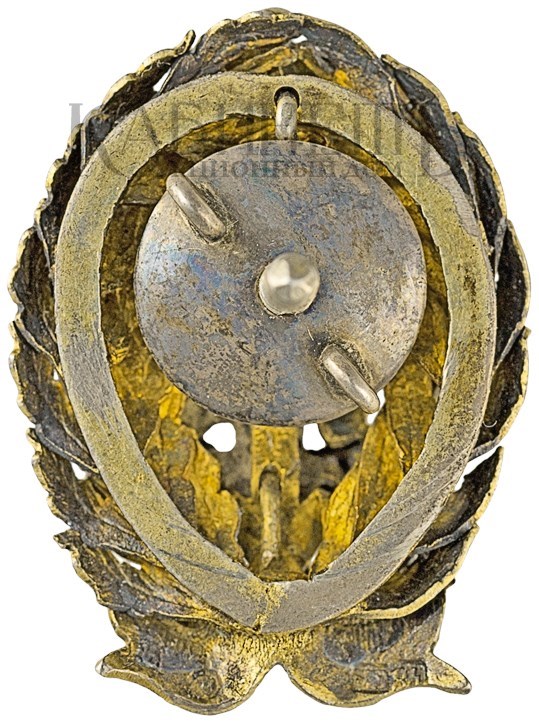 Клейма: на оборотной стороне на лентах венка – пробирное «84» Московского окружного пробирного управления (с буквой «дельта»), знак удостоверения; именник «Бр.Б».