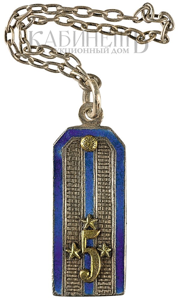 Жетон в виде миниатюрного погончика есаула 5-го полка Оренбургского казачьего войска