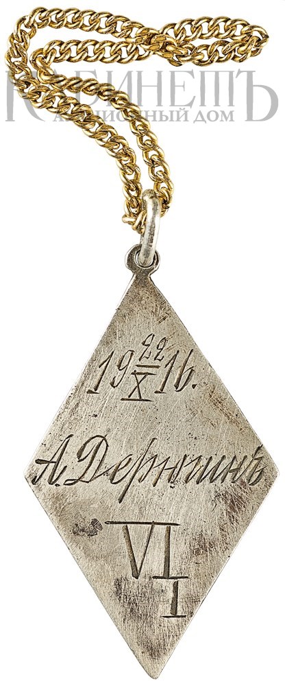 На оборотной стороне выгравирована надпись: «19/22/Х/16/ А. Дерюгинъ/ VI/I».