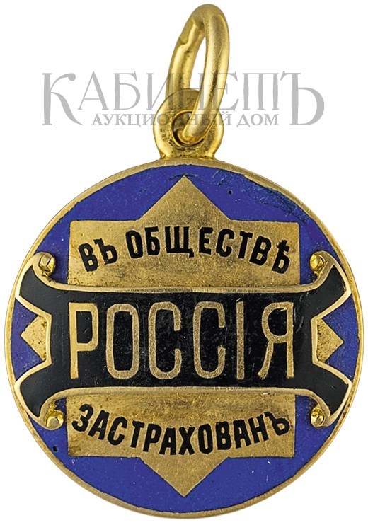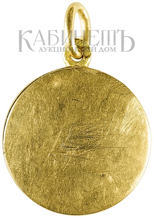 Клейма: на оборотной стороне на ушке – пробирное «56» для маловесных изделий из драгоценных металлов Санкт-Петербургского окружного пробирного управления (с буквой «альфа»), знак удостоверения, именник «ДО»; на подвесном кольце – знак удостоверения.