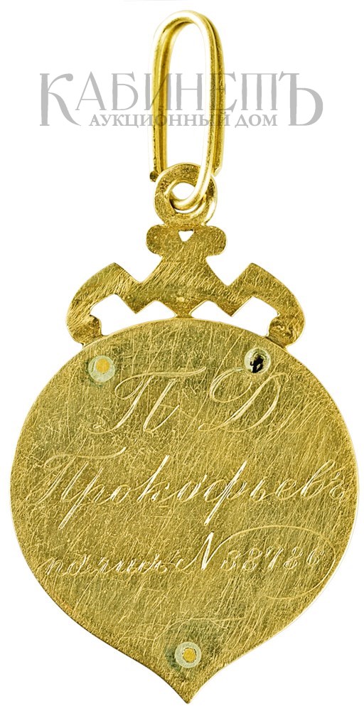 На обороте выгравирована надпись: «П.Д. / Прокофьевъ/ полисъ № 3786».