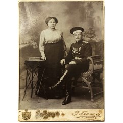 На кителе изображенного – знак полка, медали «В память 300-летия царствования Дома Романовых» и «В память 100-летия Отечественной войны 1812 года», знак «За отличную стрельбу», иностранная медаль.