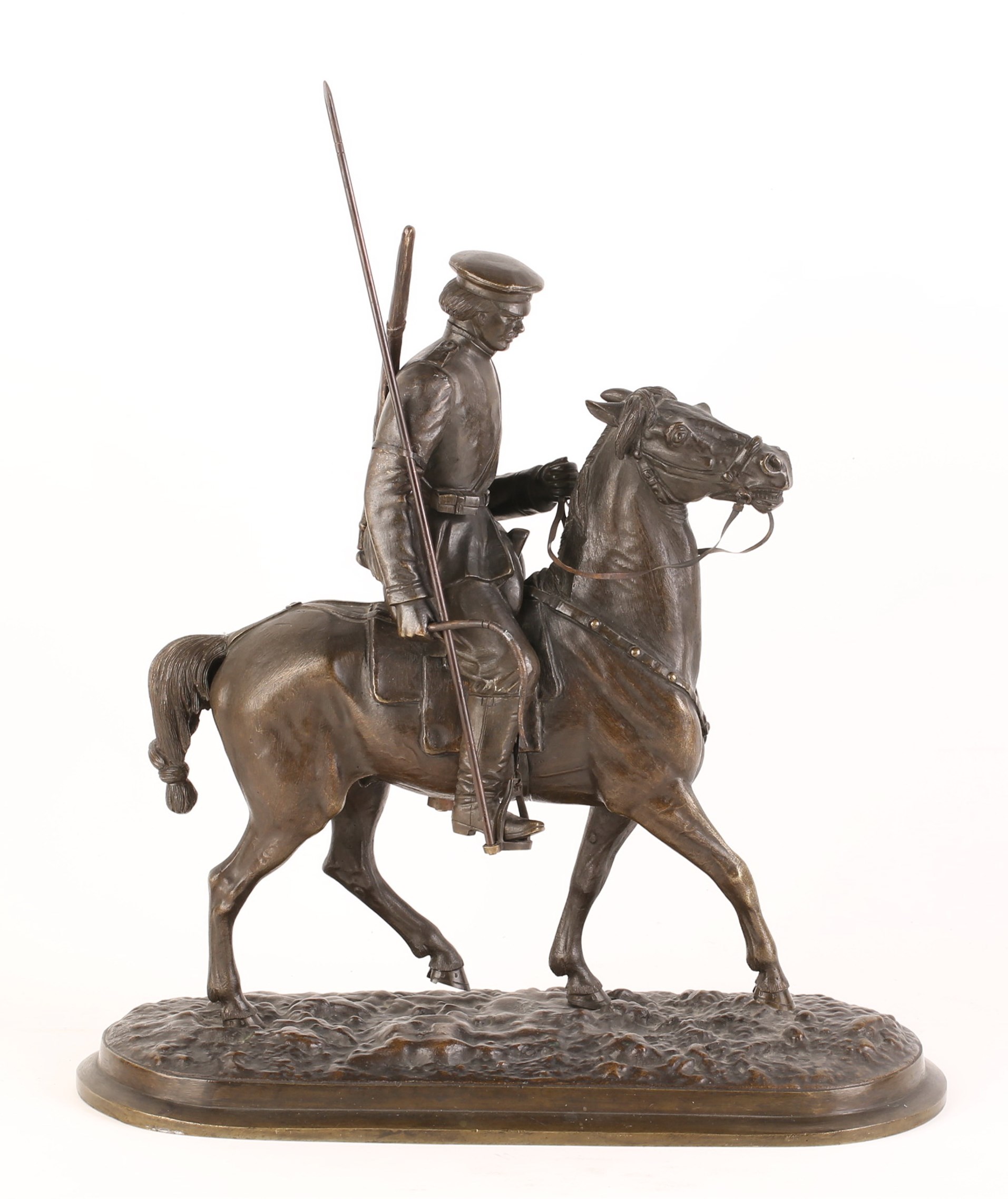 Модель представленной скульптурной композиции в современной литературе иногда называют «Младший урядник Донского казачьего войска царствования императора Александра II». С таким названием скульптура была опубликована в журнале «Антиквариат, предметы искусства и коллекционирования», № 6-8, июнь-август 2009, с.118. Авторы публикации не упоминают наличие авторской надписи.
