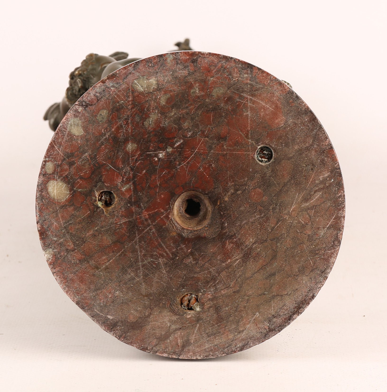 Бронза, литье, монтировка, патинирование. Мрамор гриотт, точение, полировка.
